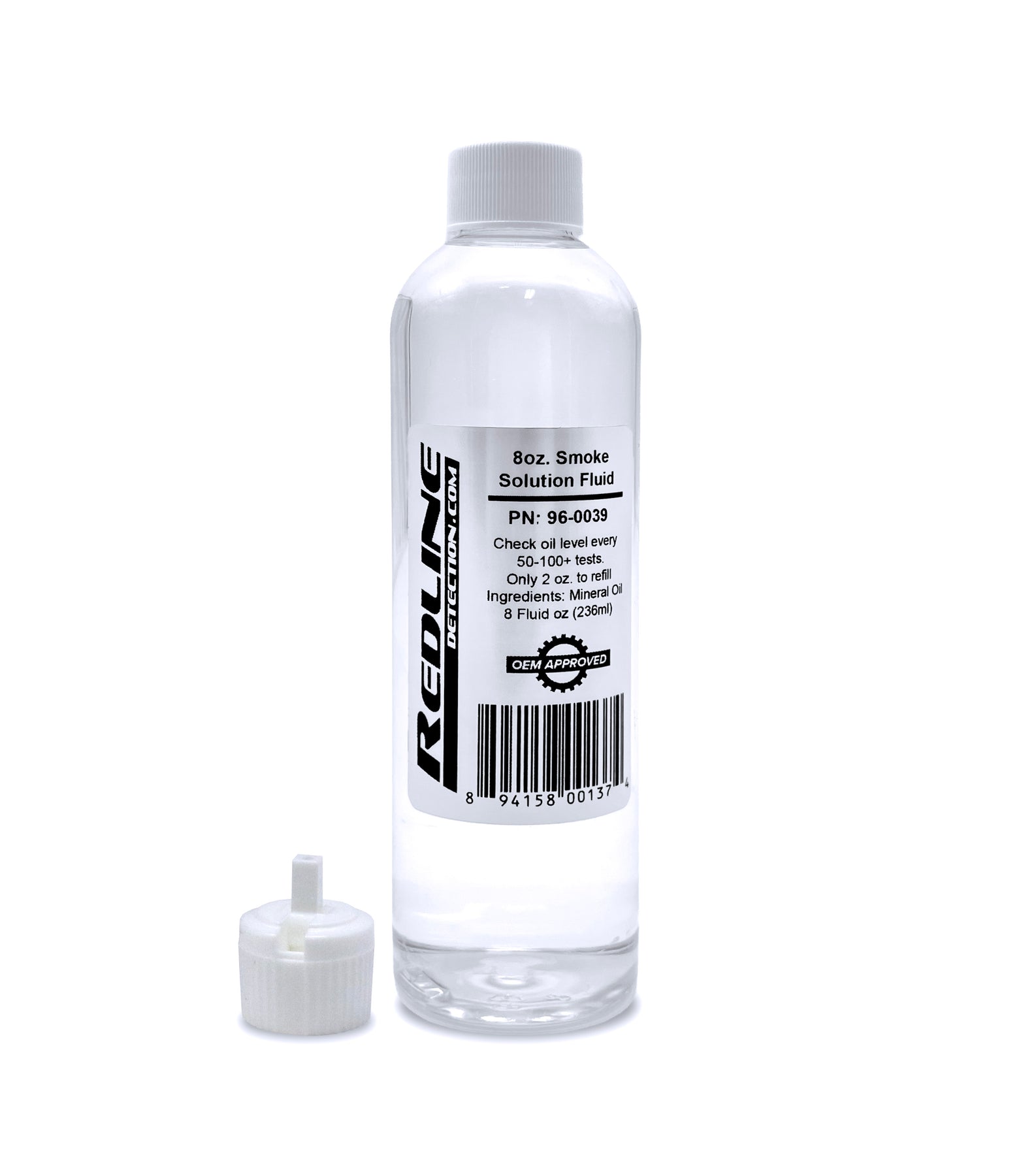 Our OEM-Approved Vapor Producing Fluid is designed specifically for automotive smoke machines.One 8 fl oz (29.6 ml) bottle can service over 1000 vehicles.Made with Mineral Oil USP or NF, white medicinal or Food Grade Type H1.Part No.: 96-0039